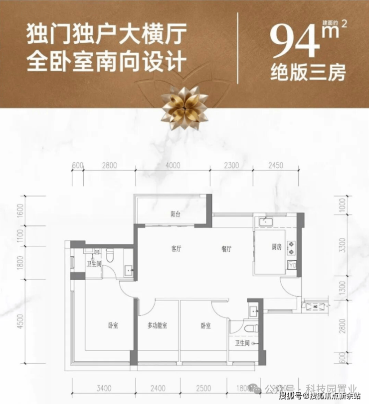 约84㎡南向山湖海景,最低门槛上车3房2卫,总价约359-383万