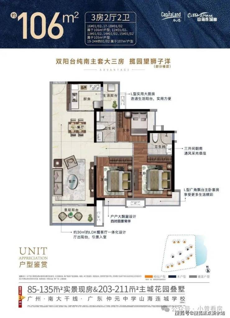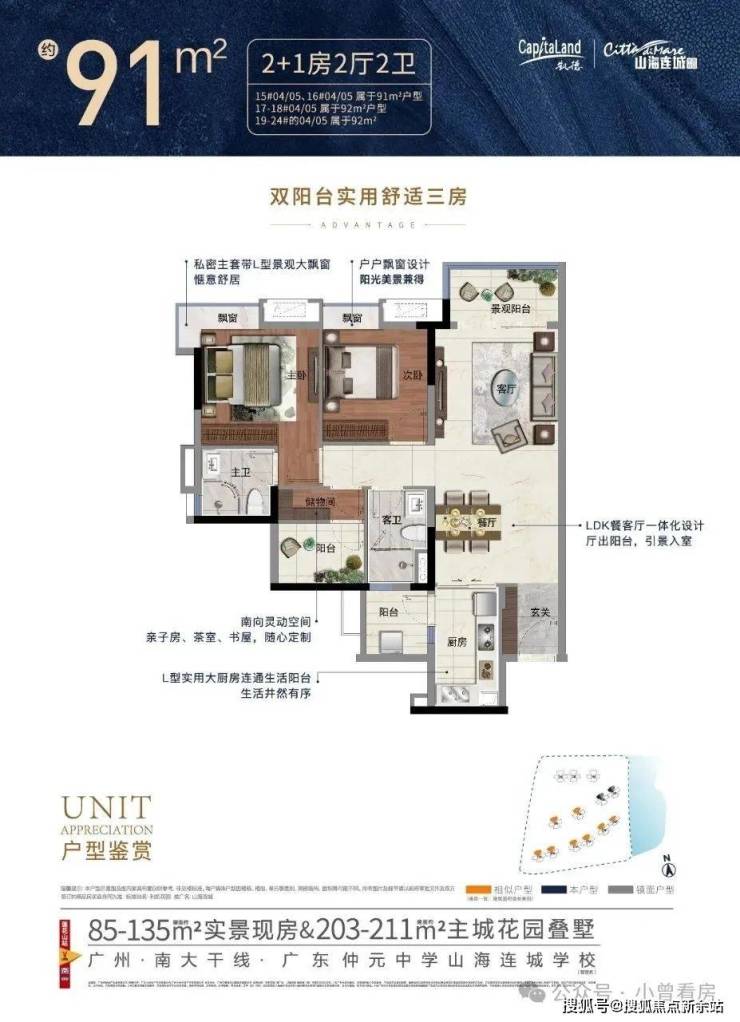 建面约92-131㎡三至四房,刚需改善置业优选。低密小高层,南向3开间,山海双景视野,全户型带主套,270度全景飘窗,美景尽收眼底。