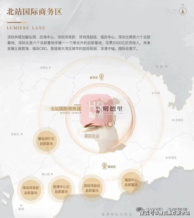 2)北站国际商务区,深圳六大总部基地之一,高投入打造国际化城市会客厅;项目距离深圳北站直线约2公里,所在民治街道是龙华目前发展的核心区域;
