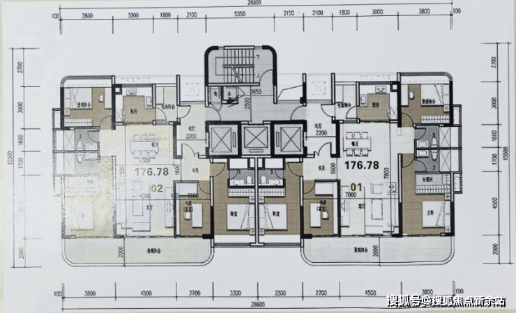 项目全盘规划6栋住宅,全是14层的小高层设计,三梯两户,共有两种户型,毛坯交付,物业费3元/月/㎡。