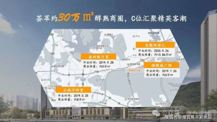 4、商圈·繁华:30万㎡TOD商业体量,约6万㎡塘朗城广场、约14万㎡的宝能环球汇、约5万㎡益田假日里购物中心