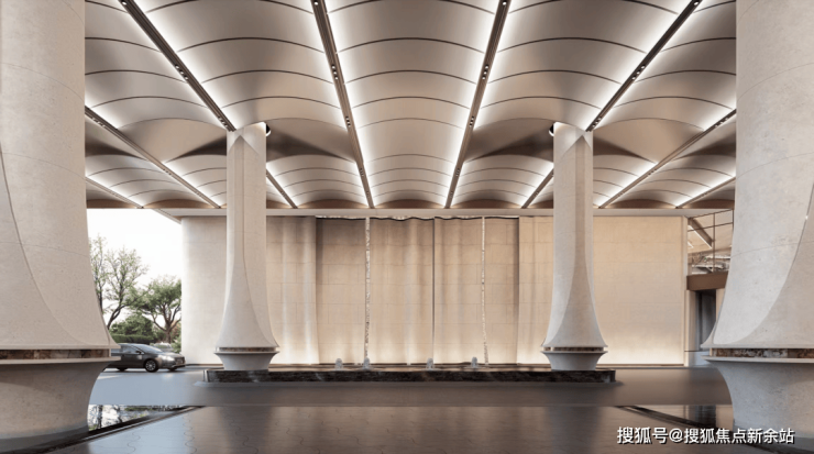 它们并非简单的石材堆砌,而是采用了整石雕琢的极难工艺,每一道纹理都凝结了匠人的温度。配合耗费巨资打造的“海风帷幕”,设计师用建筑语言解构了“海”的波纹与韵律。甚至连车库都充满了艺术的偏执——“钻石切割面”的吊顶设计,让每一次归家,从地库开始就进入了一场光影的艺术展。这些不惜工本的细节,让建筑不再是冰冷的机器,而是拥有了温度与灵魂的“传世藏品”。