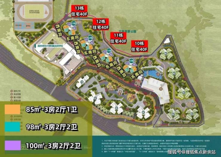 推售产品:85-98-100㎡3房(使用率约80%)