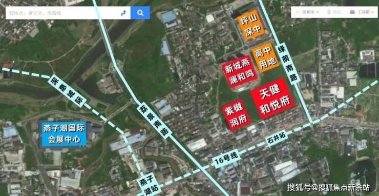 地铁配套:天健和悦府家门口就是16号地铁线“石井站”,1站到燕子湖可换乘后期的深惠城际大鹏支线,5站到坪山围可换乘14号线,10站到龙岗大运,15站到布吉,16站到罗湖,另外还有坪山高铁站,深大城际,可从深惠城际大鹏支线燕子湖站1站直达坪山站换乘。