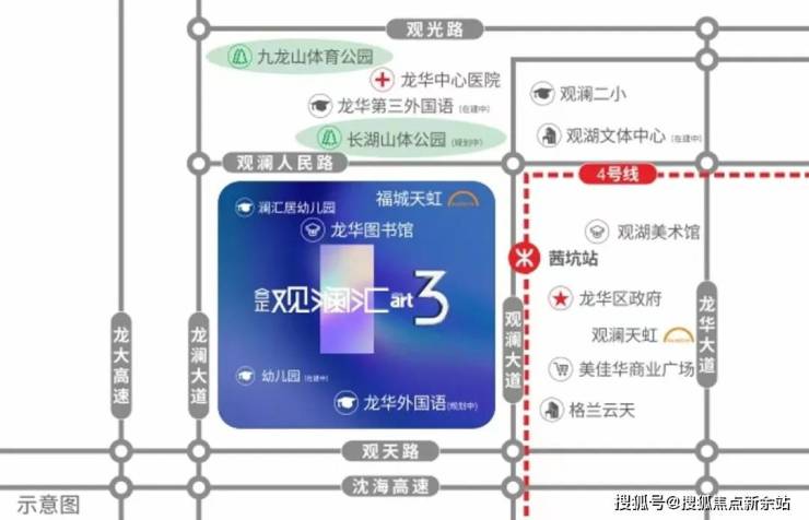 龙华百万综合体大盘,4号线北延线茜坑站地铁口物业合正观澜汇三期地块住宅方面两个区域中能卖的住宅约1883户可售住宅,