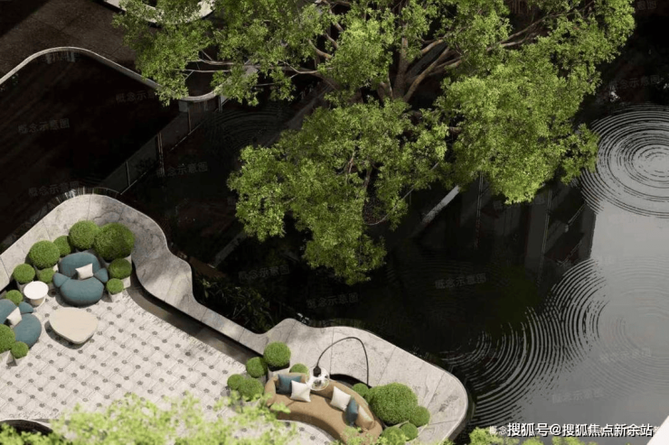 首层:水景庭院 + 酒店式落客区,归家仪式感拉满;