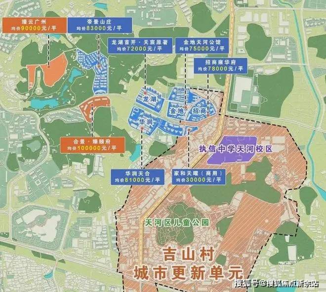 除了家门口待建的学校,周边现有五大省级名校——清华附中、执信中学、天河外国语学校、广州中学、广州岭南中学(暂定名)。