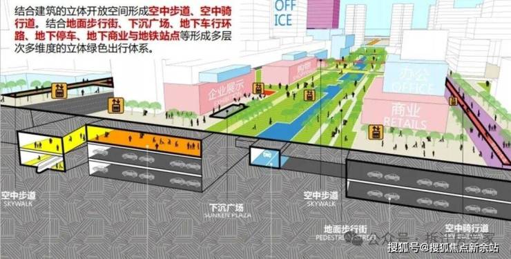 3、立体交通——未来片区多层次、多维度的立体绿色出行体系。双地铁上盖,市政规划的空中连廊系统,“0”距离接驳全城。