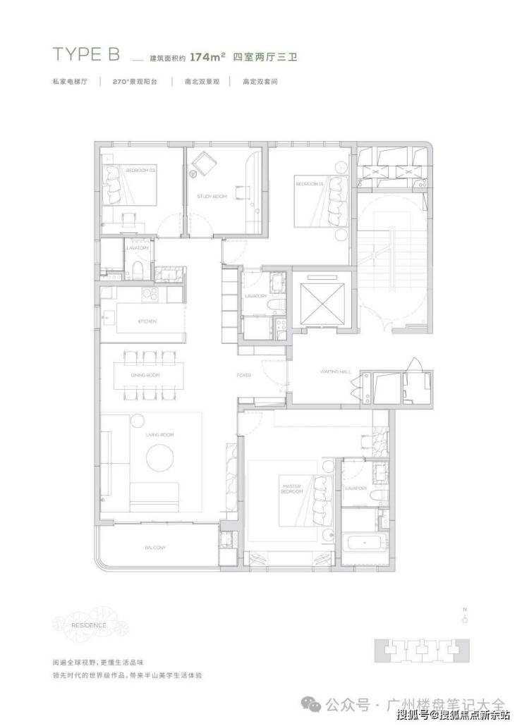 【174㎡户型】独享私家电梯厅-270度环幕观景阳台-高定双套间