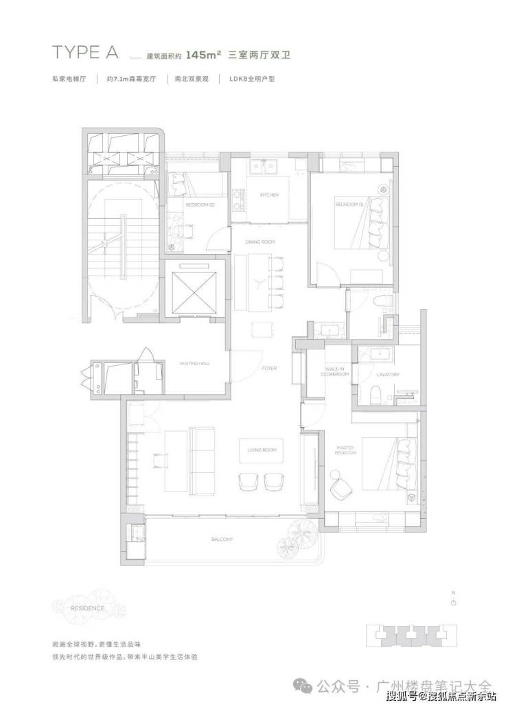【主力户型】【145㎡户型】独享私家电梯厅-约7.2m²森幕宽厅-LDKB全明户型
