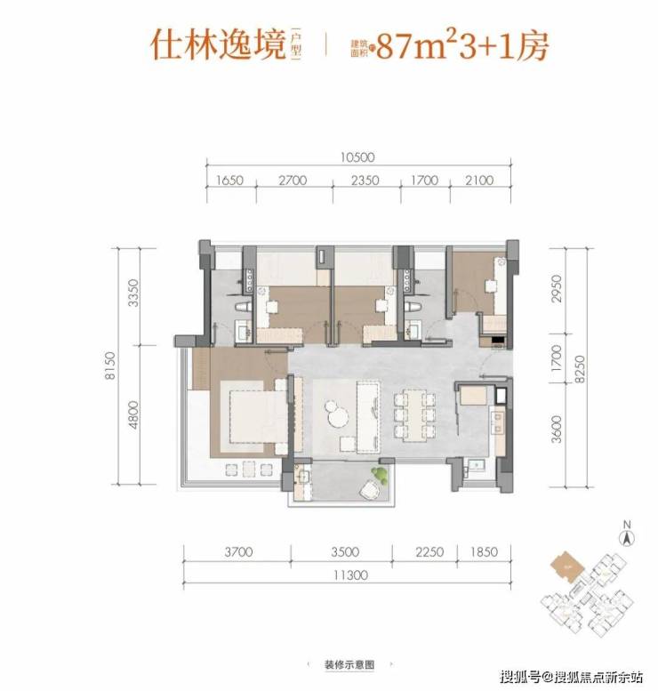 仕林逸境建面约87m²3+1房