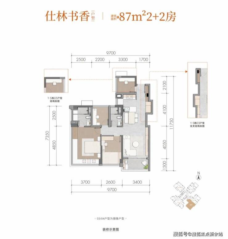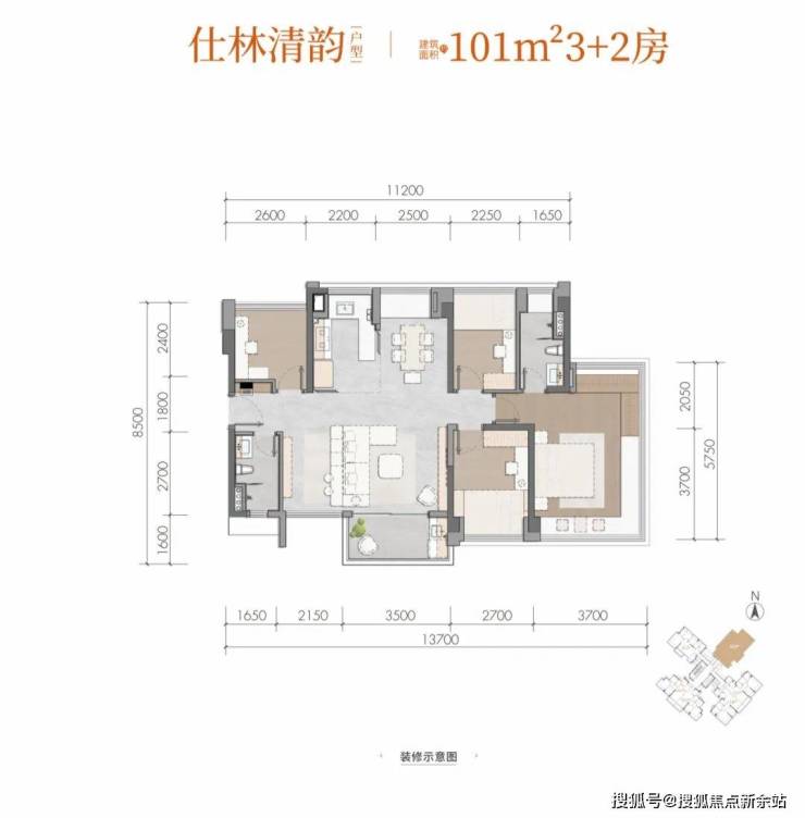 仕林清韵建面约101m²3+2房