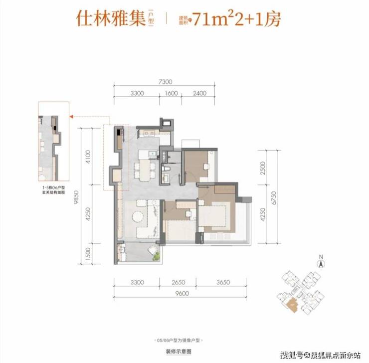 仕林雅集建面约71m²2+1房