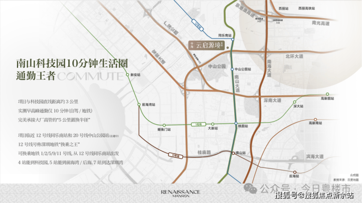 『中海云启源境家园』处在科技园10分钟通勤圈,深圳湾&前海湾20分钟生活圈,4站科技园,5站达前海湾&后海总部基地。