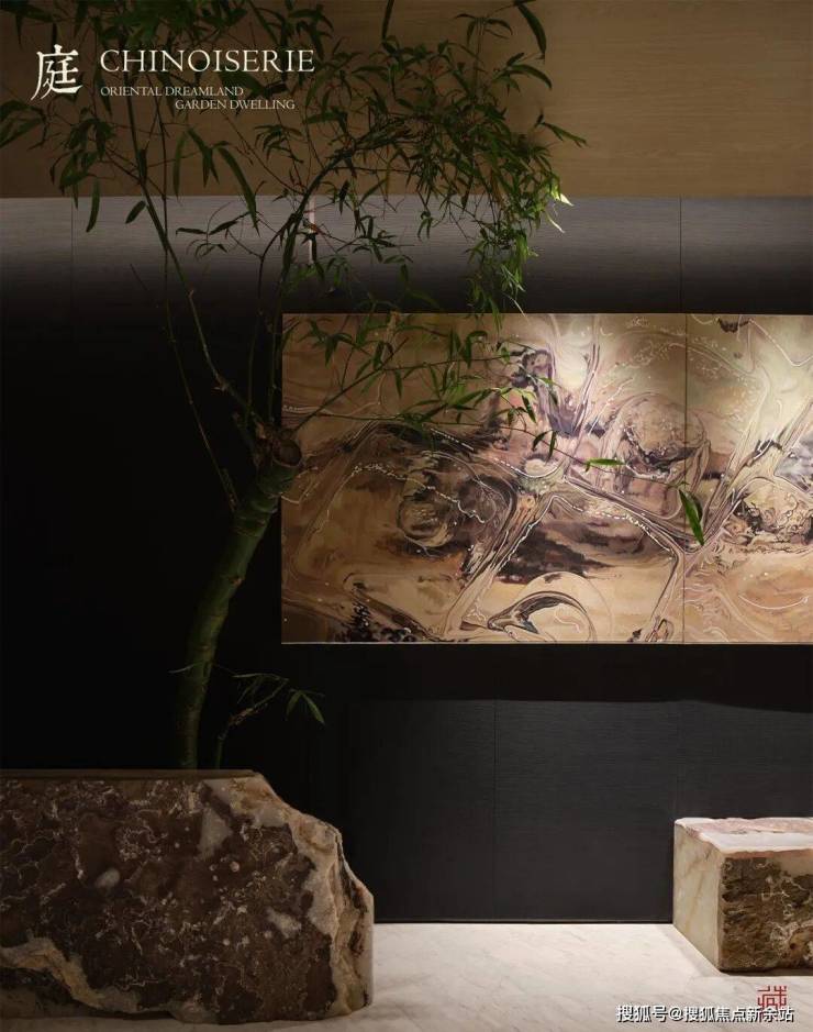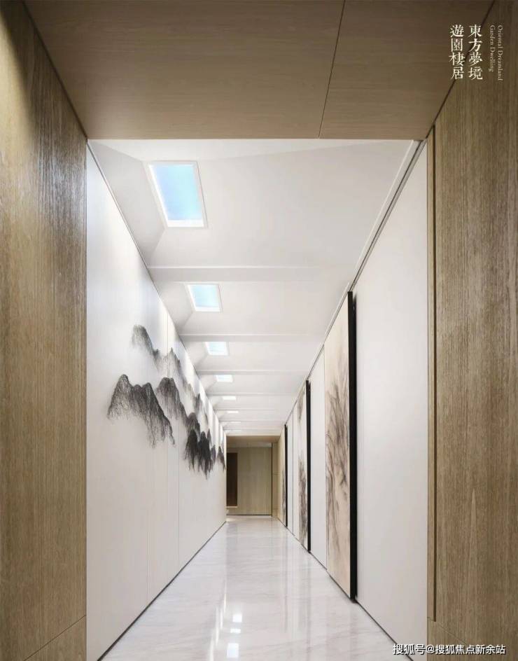 以东方手法“入园”为情境,艺术长廊以“造影”为灵感,将山石、植物、雕塑等庭院感受的人文感官引入室内。