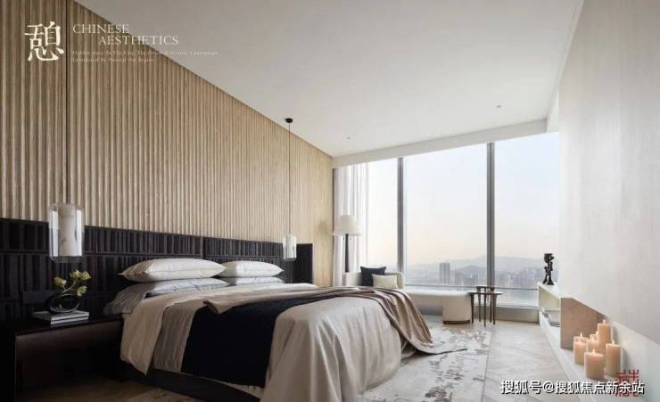 延续素净雅致的空间主调,临窗minibar和浴室共享迷人的都市山海景观,营造放松的度假式体验。整个卧室的色调柔和而统一,共生、圆融共同造就东方梦境般的生活。