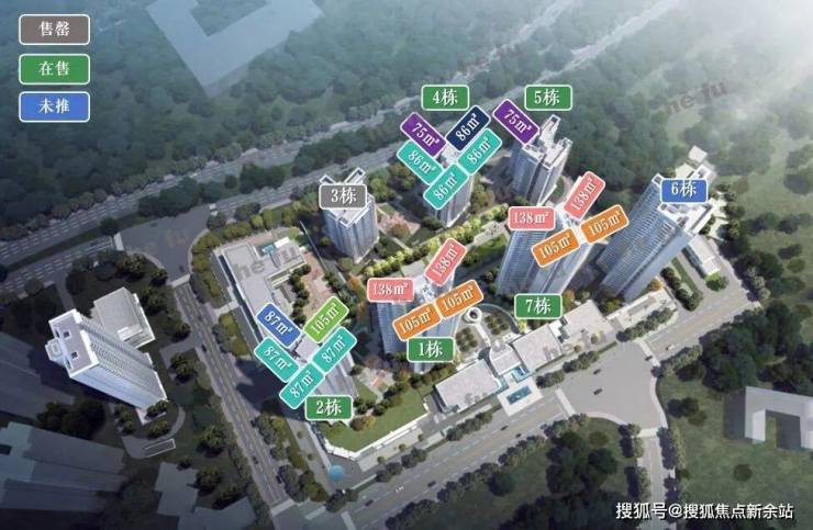 整个项目7栋商品住宅,前排4栋32-33层,后排3栋16-17层,