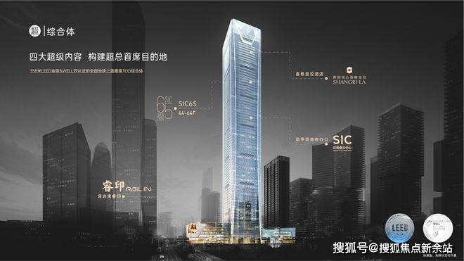 集商业、酒店、办公、SIC65四大旗舰业态,构建超总首席目的地