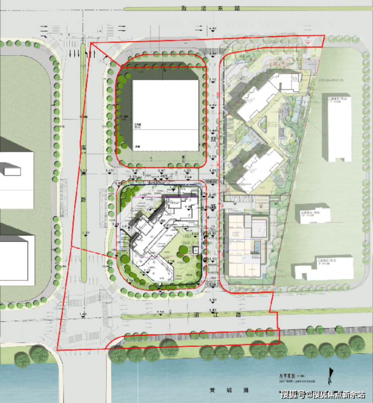 2.项目占地5706㎡,容积率5.26,限高138m。呼应琶洲西区布局,结合周边景观,优化楼栋角度,在保持板式结构的同时,最大化利用南向景观面,享有良好景观视野,并确保良好的南北通风采光。功能分区明确,公建配套设于西侧面向规划道路,东侧围合形成内向型业主园林。
