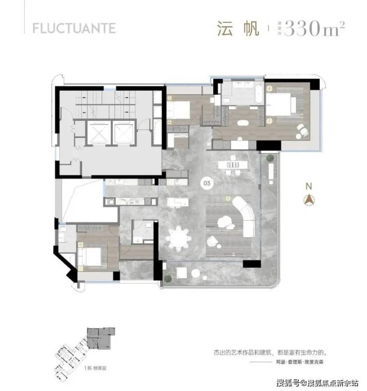 此户型是华樾项目在琶洲樾261㎡的户型格局上优化提升。