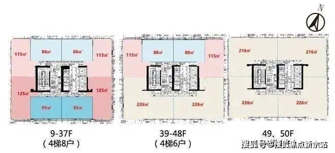 •建筑形态:194米超高层塔楼,共50层,分为低区(9-38层)、高区(39-48层)及顶层(49-50层),梯户比从低区4梯8户到顶层4梯4户逐级优化。