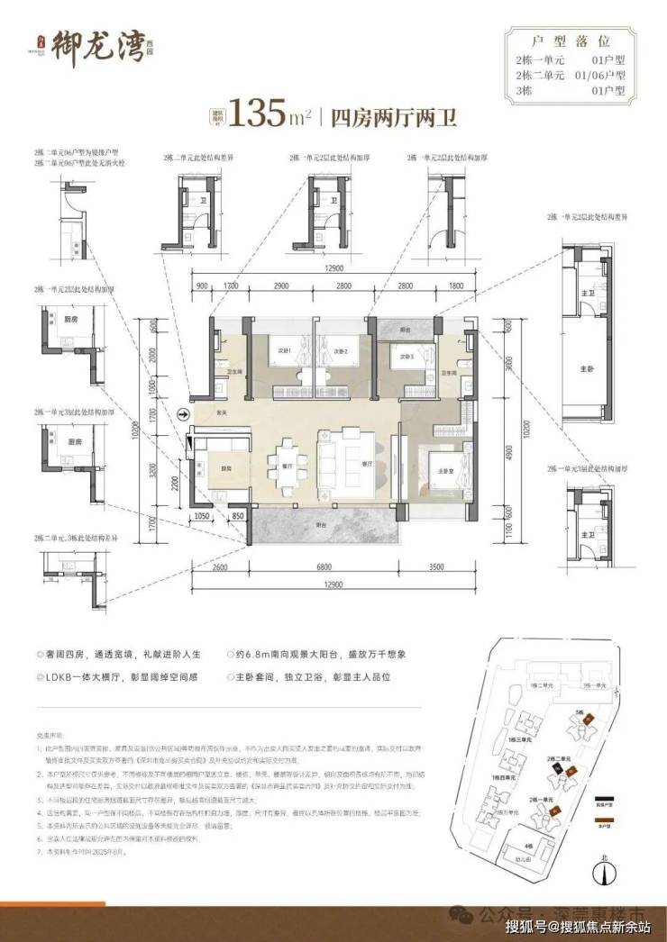 首推的御龙湾西园 01 地块,占地 4.13 万㎡,总建筑面积 31.31 万㎡,容积率 5.32,绿化率 30%。由 6 栋 28 - 32 层的高层住宅以及 1 所 12 班制幼儿园构成 。