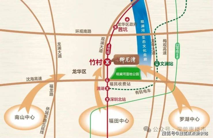 项目为地铁 4 号线竹村站上盖物业,商业 MALL 与停车场均可直连地铁出入口 。乘坐地铁 7 站可快速抵达深圳北,13 站直达福田中心,轻松对接深港生活圈 。此外,电车文澜站直线距离约 500 米,地铁 22 号线也正在建设中 。