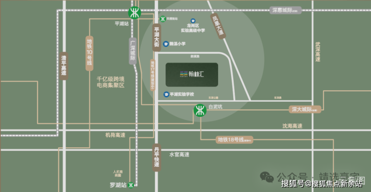 【项目位置】 岗宏翰林汇位于深圳市龙岗区平湖街道平湖大街与湖岭路交汇处,紧邻在建的园岭学校和平湖实验学校。平湖作为深圳17个重点发展区域之一,定位为“金融+科技+总部”特色的战略新兴产业基地,同时也是深圳跨境电商产业的重要聚集地,其跨境电商总量及规模在全市处于领先地位。