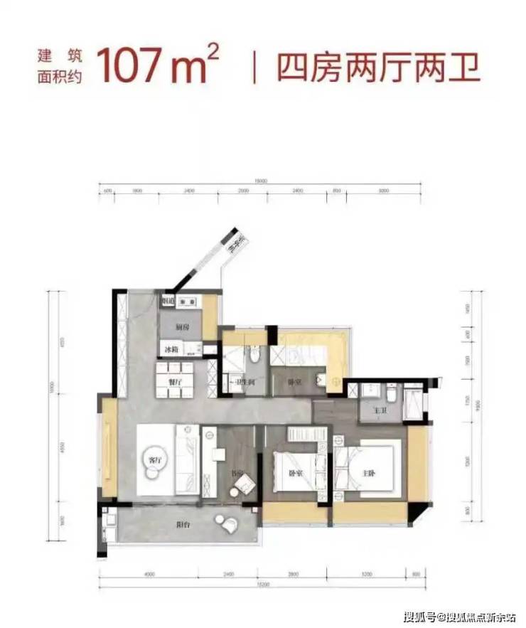 【建筑面积107㎡4房2卫】
