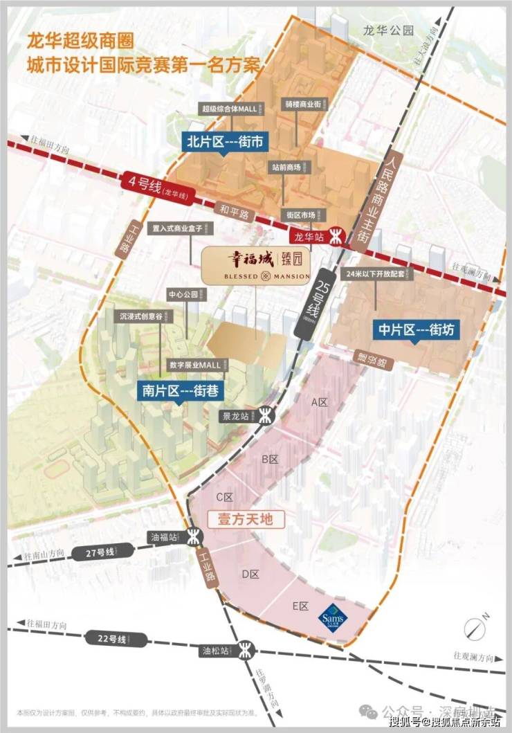 项目占位龙华超级商圈几何正芯,龙华商业中心城市更新北片区,傲踞天赋C位地块。