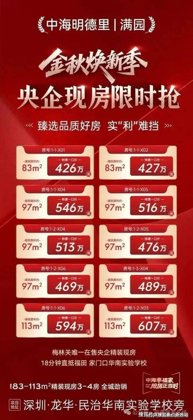 最新消息:龙华梅林关口中海明德里推出几套内部特惠单位,目前清盘甩卖中,价格超级惊喜,83㎡3房综合优惠后440万起即可购得,原备案价650万的97㎡三房两卫,直接打到480万一口价,目前还有几套单位可以选择!