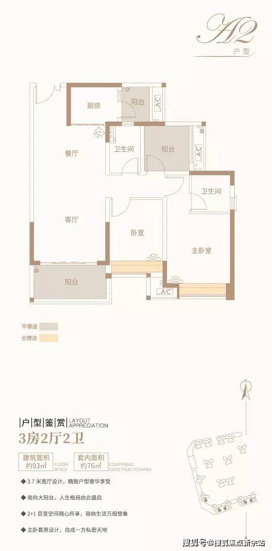 3房2厅1+1卫/约98平方米/精奢三房,面朝宽景