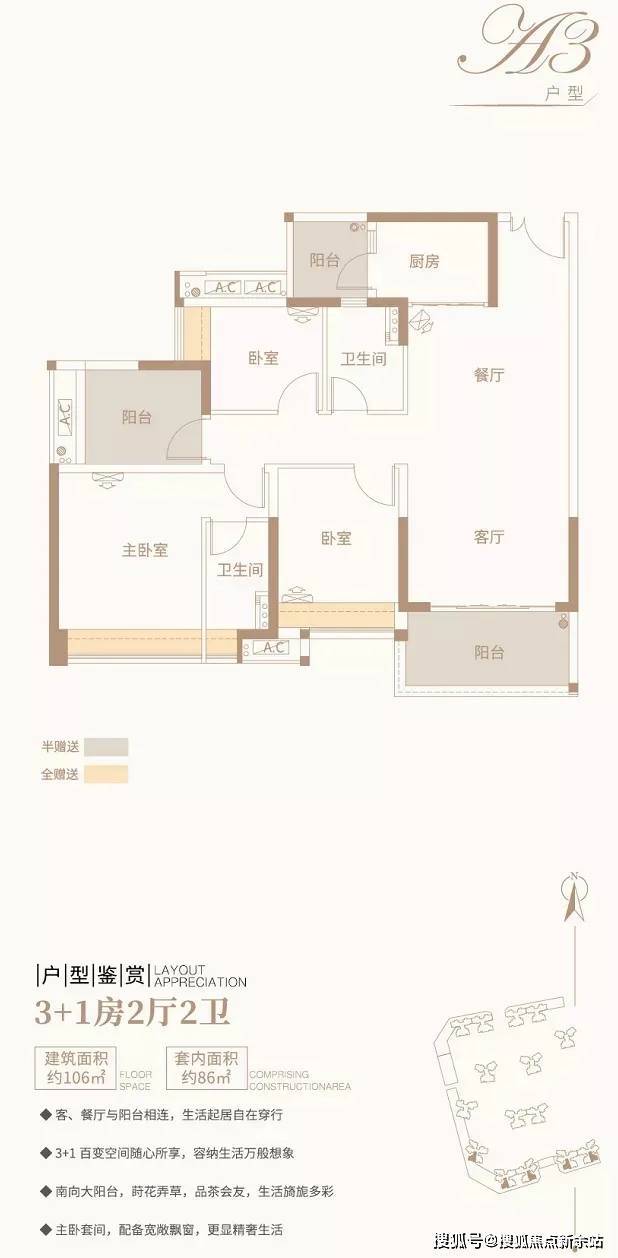【户型鉴赏】3+1房2厅2卫/约103平方米/南北对流双阳台