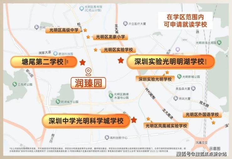 优质教育:社区内配置幼儿园,西北侧地块为九年一贯制学校(规划中),与项目一路之隔。大城规划3所九年一贯制学校、其中一期学校深圳实验光明明湖学校2025年9月已开学(信息源自深圳光明学校公众号),项目3公里范围内涵盖深圳中学光明科学城学校、深圳市光明实验学校等。