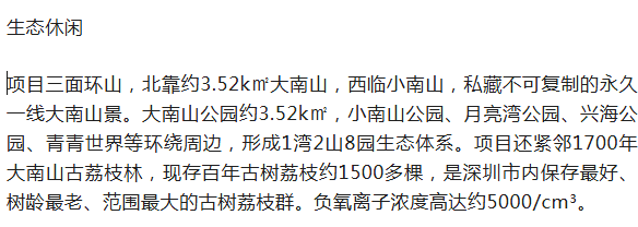 观山海家园位于前海合作区大、小南山片区西组团,北临大南山,南接妈湾片区,地理位置极佳;开发商是深圳市远荔实业有限公司,项目占地面积约42000㎡,总建筑面积约163000㎡,计入容积率的总建筑面积约112000㎡;容积率约2.66,绿化率30.85%,是前海极为罕见的低密山居项目。