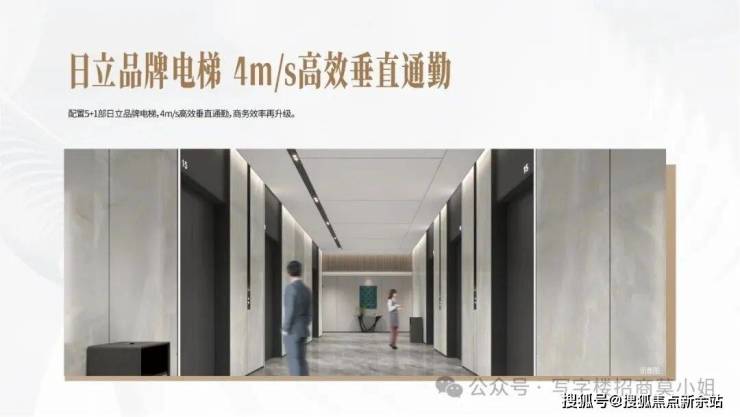 5+1台日立品牌电梯,4m/s高效垂直通勤!满足大规模人流同行,助力企业高效办公