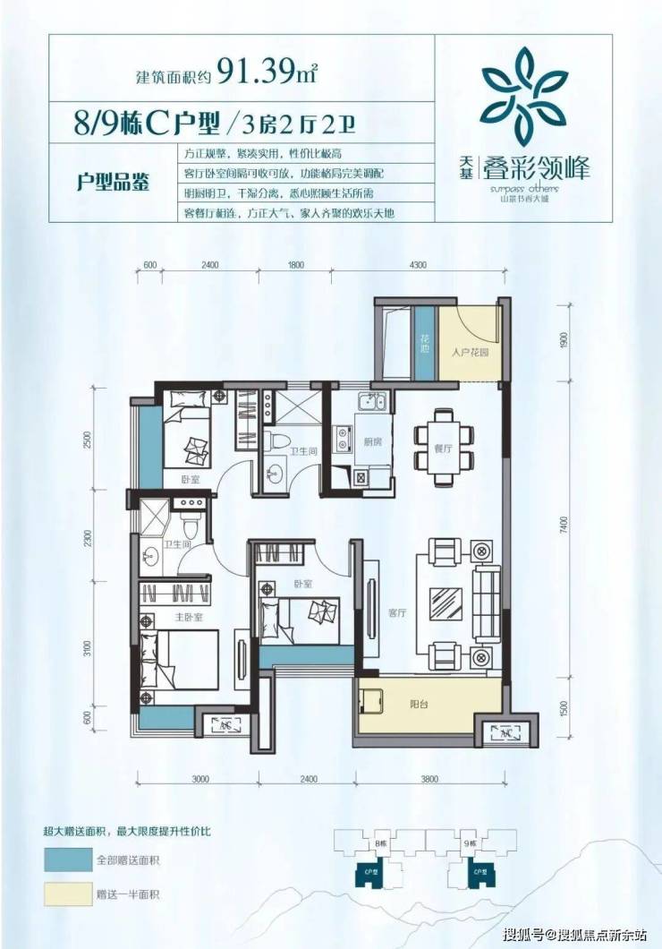 在售面积:72-102㎡二三房