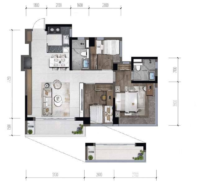 107㎡3+1房,满足家庭不同阶段的多种需求
