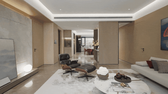 私属电梯厅将喧扰阻隔在外,身心随之切换至从容的居家模式。通过空间动线的错位布局,巧妙规避了客厅与居室之间的视线交集,让公共区域的活跃与私密空间的静谧各得其所。卧室分布在四角,各享独立居住动线,双套房配置尊重三代人起居习惯,互不干扰,亲情和谐。
