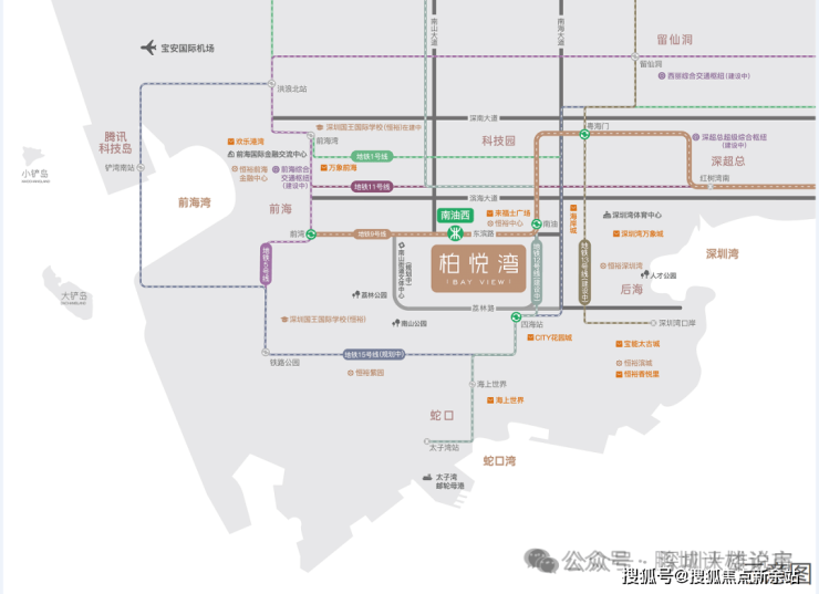 恒裕柏悦湾由2栋47层高公寓与2栋42层商办组成项目自带·约2.2万㎡潮流商业·约5000㎡精英会所·约8000㎡北大光华管理学院(北大光华瑞思楼)·约2500㎡清华大学港澳研究中心·约1600㎡六班制公立幼儿园共同组成约37万㎡垂直综合体——200米深湾超级地标
