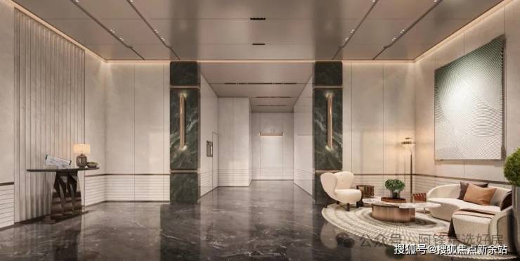 电梯轿厢的细节更见用心:墙面用编织纹理皮革仿板拼接天然大理石,指尖划过能触到细腻肌理。