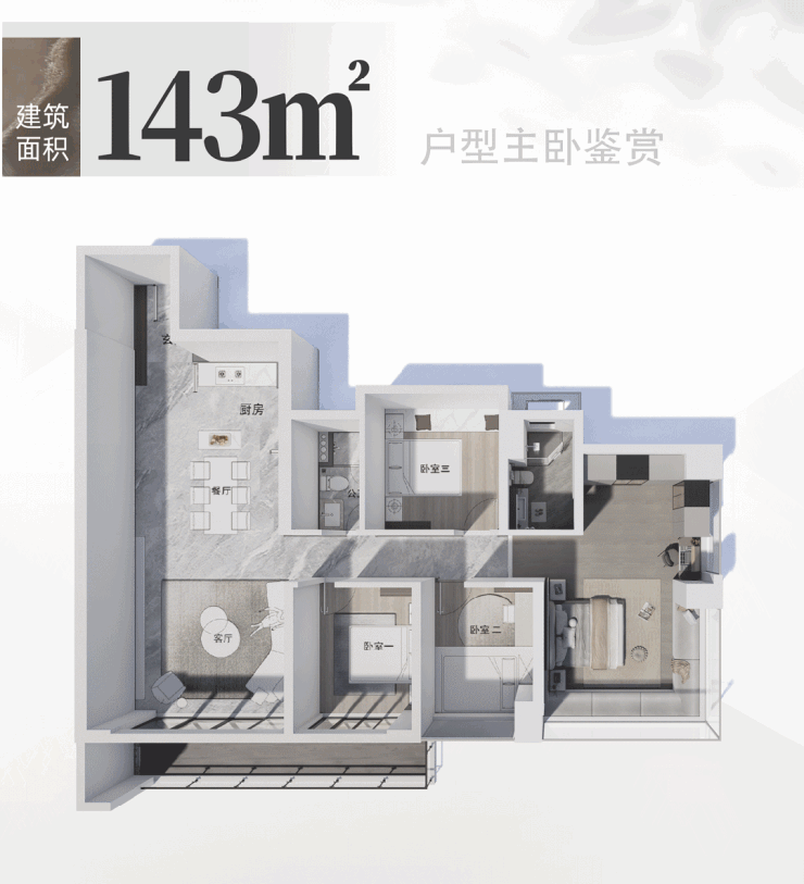 约143平户型更是每一处都彰显着 “尺度超配”,全屋拉开约15米南向采光面,所有主要功能区都朝南,确保不同家庭成员的起居舒适度。