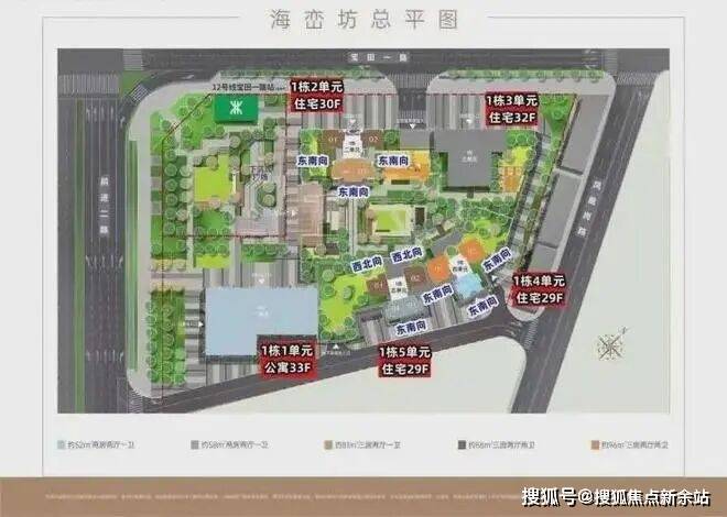 海峦坊花园,总占地面积约1.6万㎡,总建筑面积约12.52万㎡,计容建筑面积约8.95万㎡,容积率5.43,绿化率35.1%,共由4栋总高29-32F住宅+1栋公寓组成,其中1栋1单元公寓33F,1栋2/4单元住宅31F,1栋3单元住宅32F,1栋5单元住宅29F。