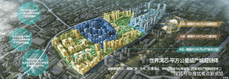 西部约500万㎡ 标杆大城,由世界上最大的建筑设计公司之一的美国CRTKL公司本部设计;集商业、住宅、产业、甲级写字楼、高端酒店、学校教育、文化休闲、交通枢纽、生态公园于一体的超大型城市综合体项目。