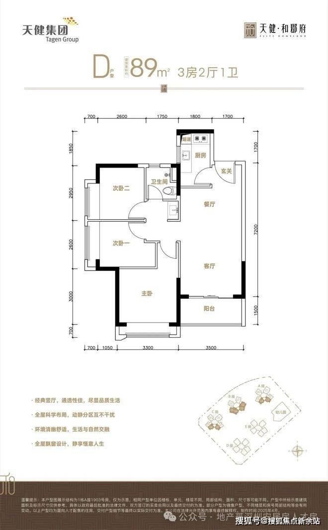 产品打造直击家庭居住需求,主力建面约89㎡3房2厅1卫,全南向布局,3梯6户设计,出行高效不拥挤。