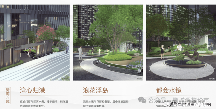 首层打造“湾海六境” 主题秘密花园湾芯归港 | 浪花浮岛 | 都会水镜 | 栖岸观潮 | 森境秘语 | 潮汐水庭;