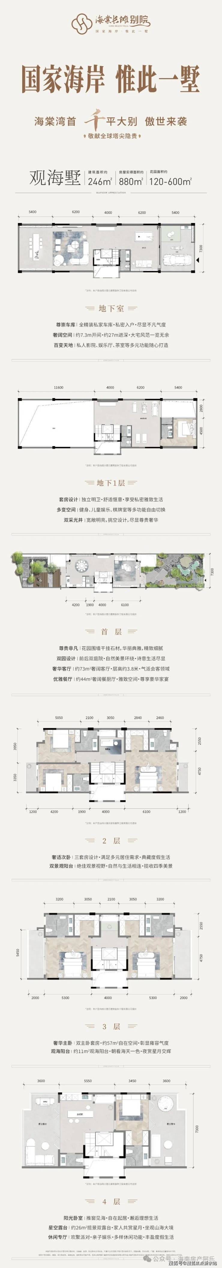 观海墅(建筑面积约246㎡,房屋实得面积约880㎡,花园面积约120-600㎡)