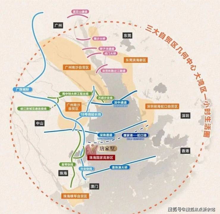 4. 深珠通道接驳处,与深圳前海仅一桥之隔,深中通道、18号轻轨延长线等交通路网,实现珠海横琴自贸区、广州南沙自贸区和深圳前海蛇口自贸区三大自贸区几何中心构建大湾区一小时生活圈