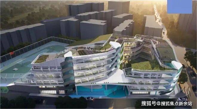 作为小区配套的幼儿园部分,设计师通过具有趣味性的设计,将建筑中层进行扭转,形成多样化的公共空间。