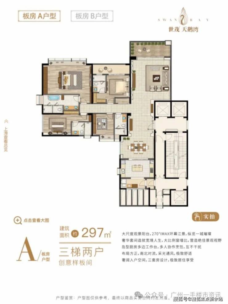 近期,世茂天鹅湾推出一套内部保留的296㎡四房江景大平层户型,这套296㎡的大平层位于6栋的超高楼层(楼层30+以上),无疑是让想拥有海珠江景豪宅的买家又多了一个选择。